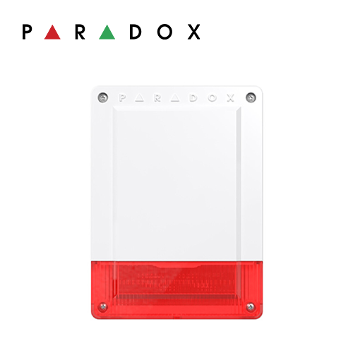 SR250 Paradox bežična spoljna sirena, antisabotažno zaštićena na 433MHzJačine 100dB sa integrisanim strob svetlom, domet 70m sa MG6130/6160/6250 i K32LX, 70m sa MG5000/5050/5050+, RTX3 na EVO192 i EVO HD i SP SPECTRA centralama (osim SP4000), dvostruka antisabotažna zaštita. Napaja se sa tri 1.5V D-baterije. Ispunjava EN 50131-4, EN 50131-1 Grade 2, EN 50130-5 Environmental Class IV standard u IP54 zaštiti.
